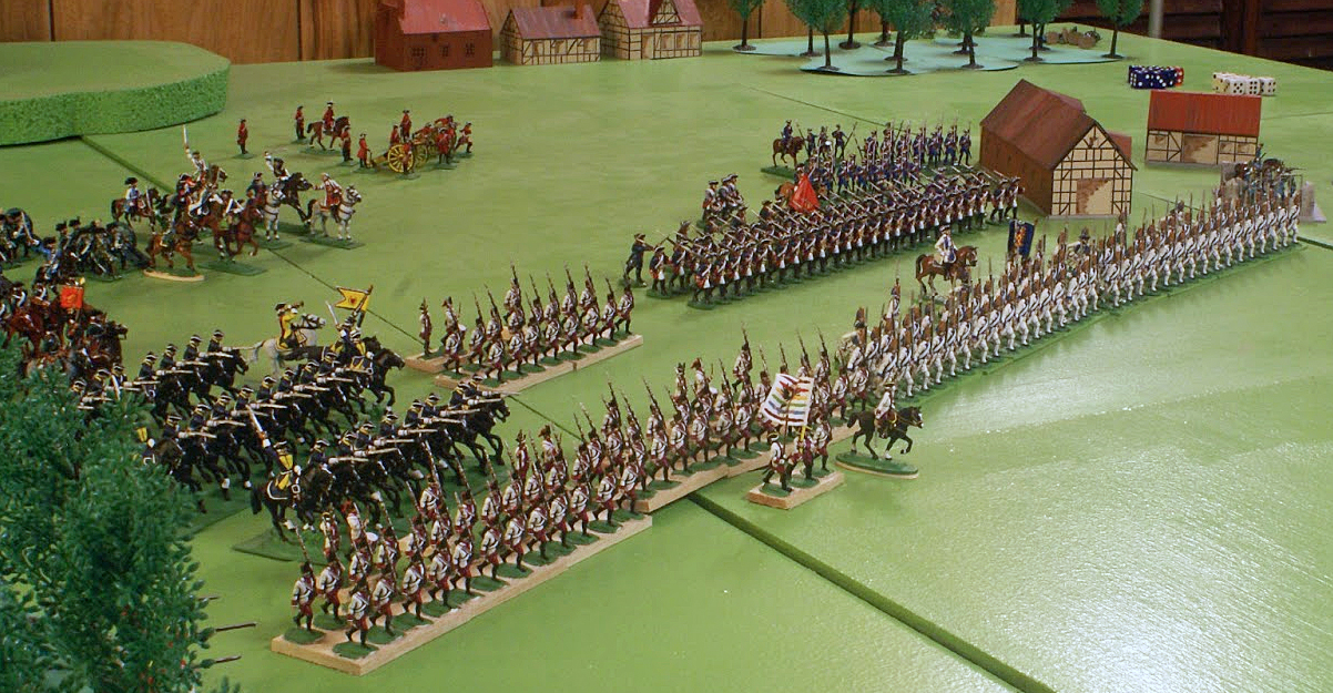 De Latte's army outside Neu Sittangbad bears down on isolated Stollenian jaegers in village.